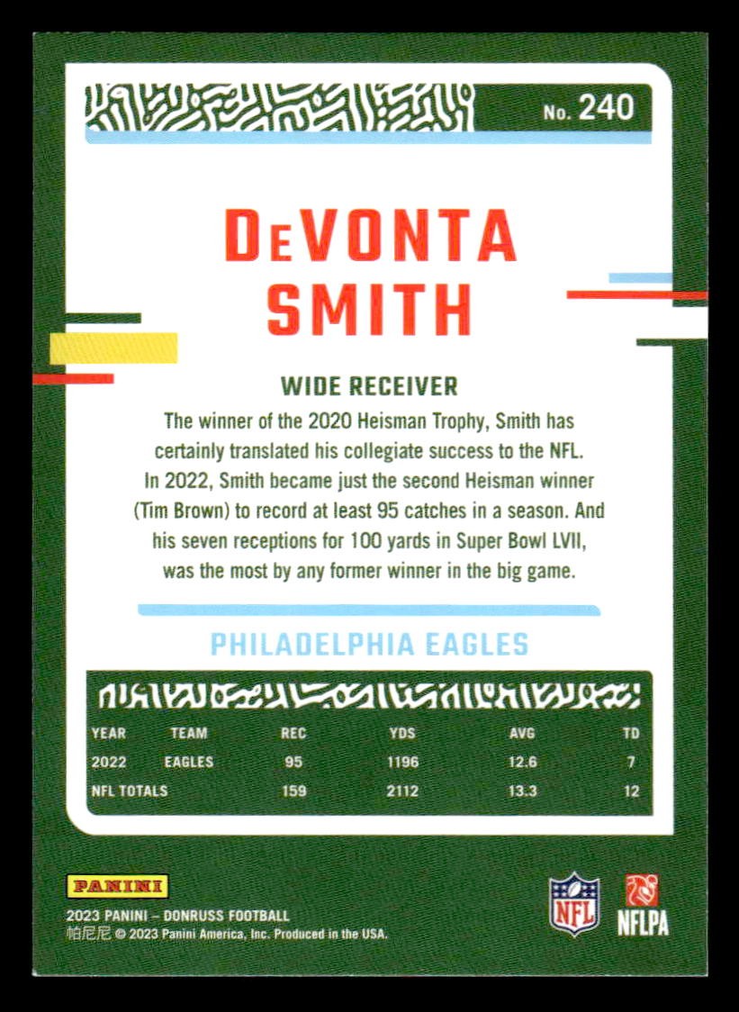 This is a nice example of a 2023 Donruss #240 DeVonta Smith