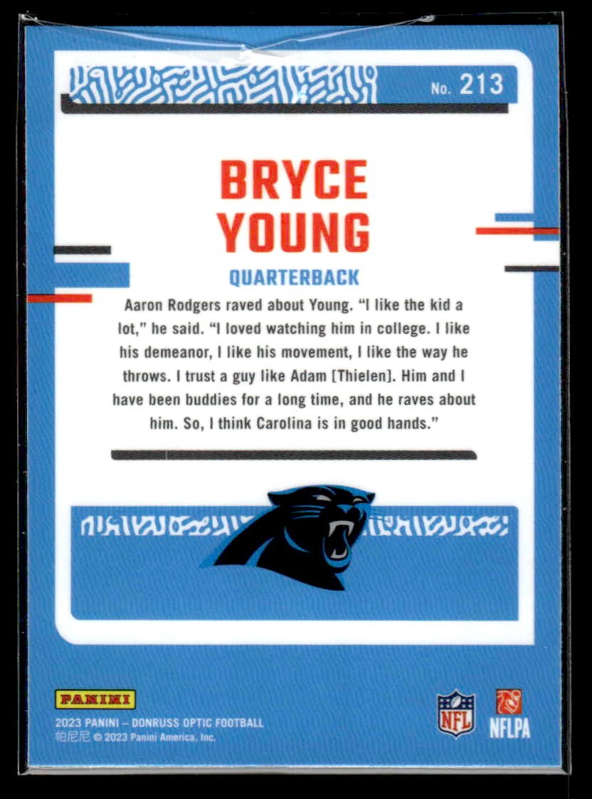 This is a nice example of a 2023 Donruss Optic #213 Bryce Young