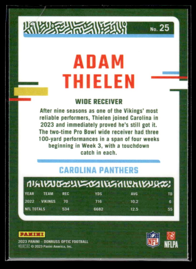 This is a nice example of a 2023 Donruss Optic #25 Adam Thielen