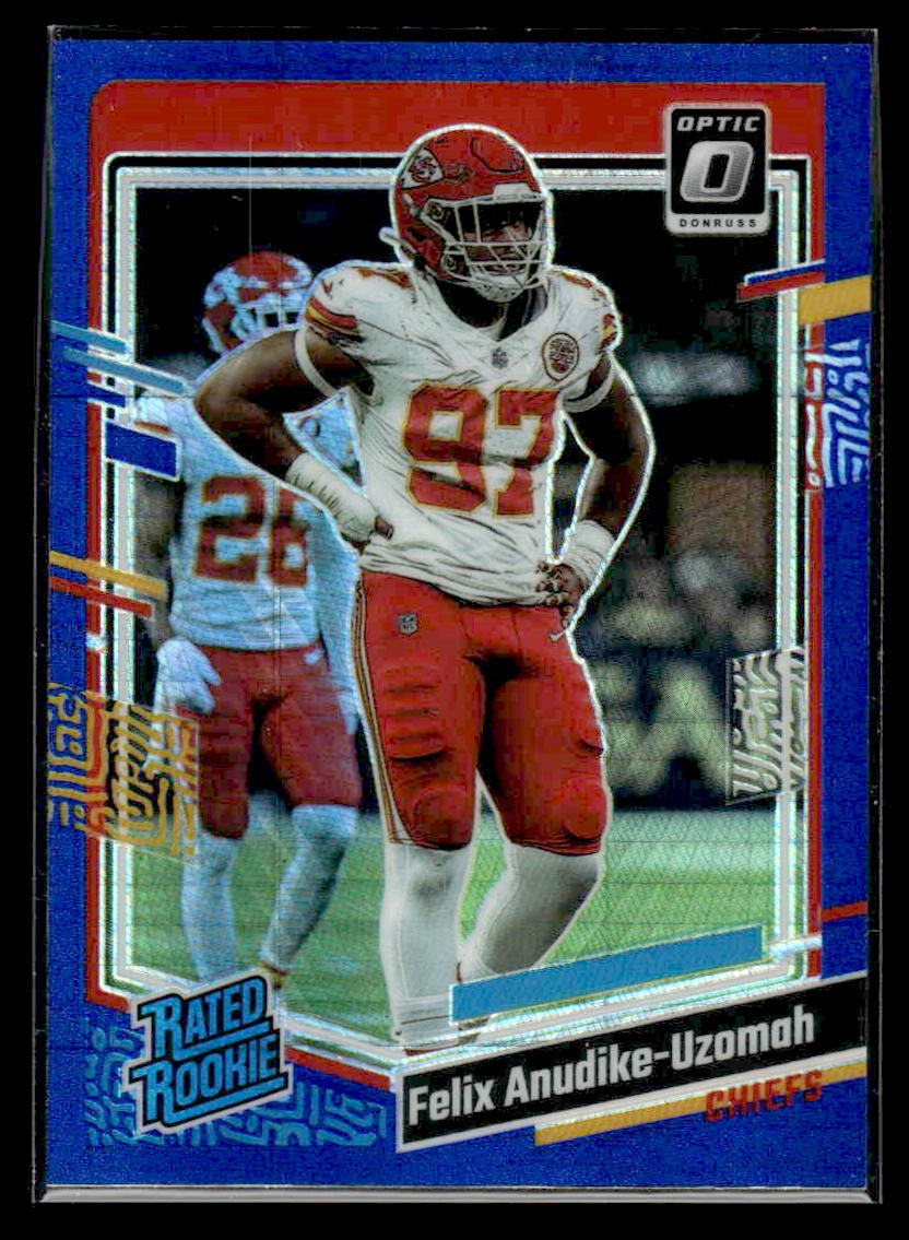 This is a nice example of a 2023 Donruss Optic #256 Felix Anudike-Uzomah Blue Scope