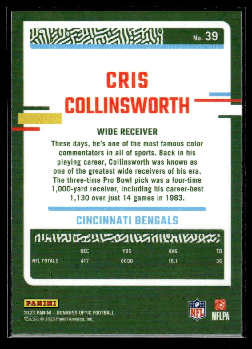 This is a nice example of a 2023 Donruss Optic #39 Cris Collinsworth