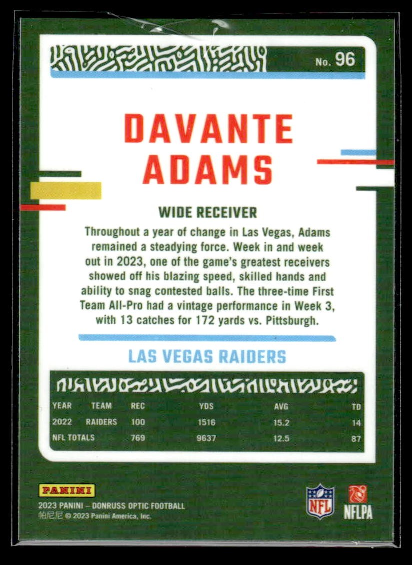 This is a nice example of a 2023 Donruss Optic #96 Davante Adams