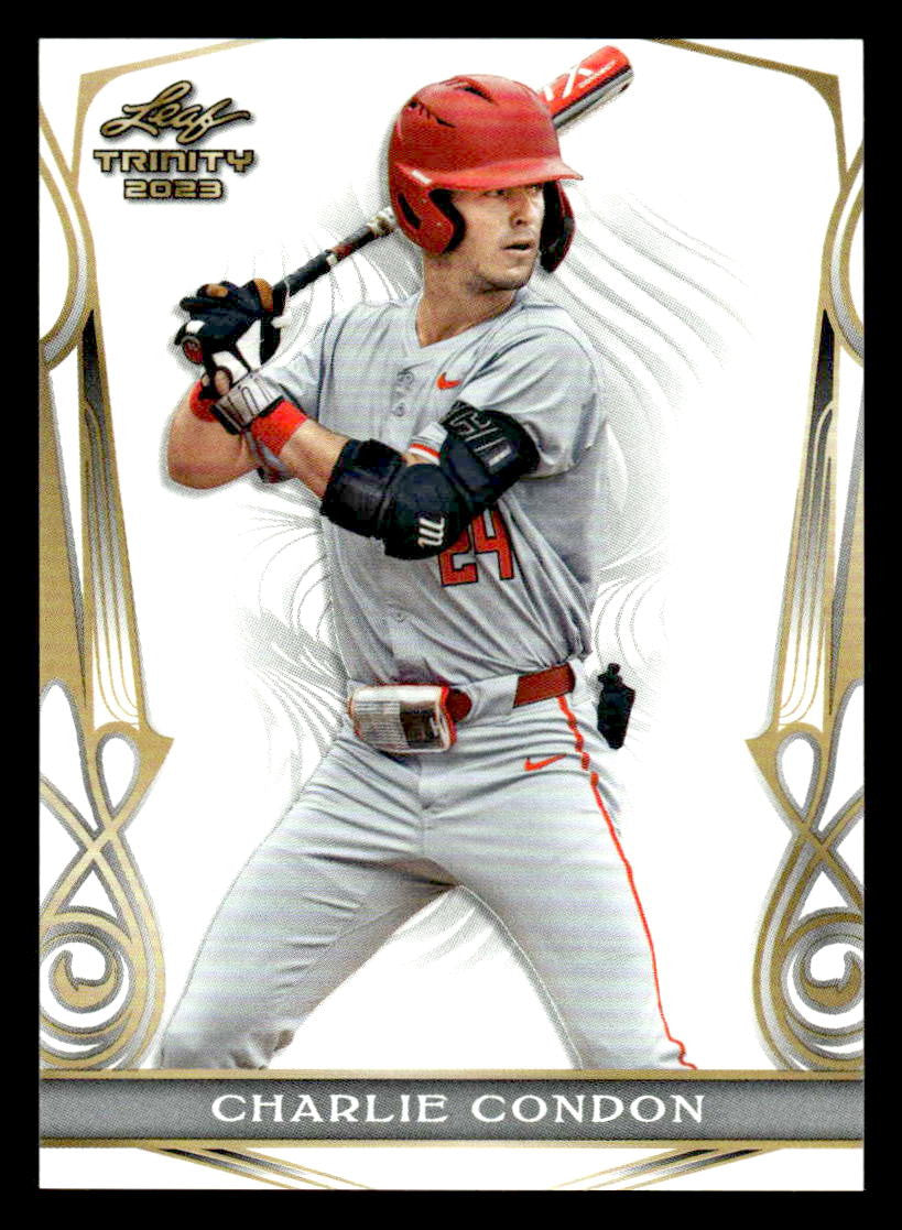 This is a nice example of a 2023 Leaf Trinity #10 Charlie Condon