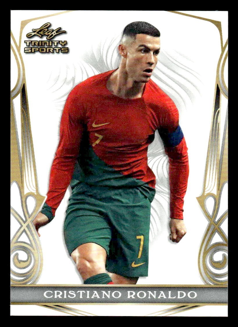 This is a nice example of a 2023 Leaf Trinity #BS-5 Cristiano Ronaldo Base Sports