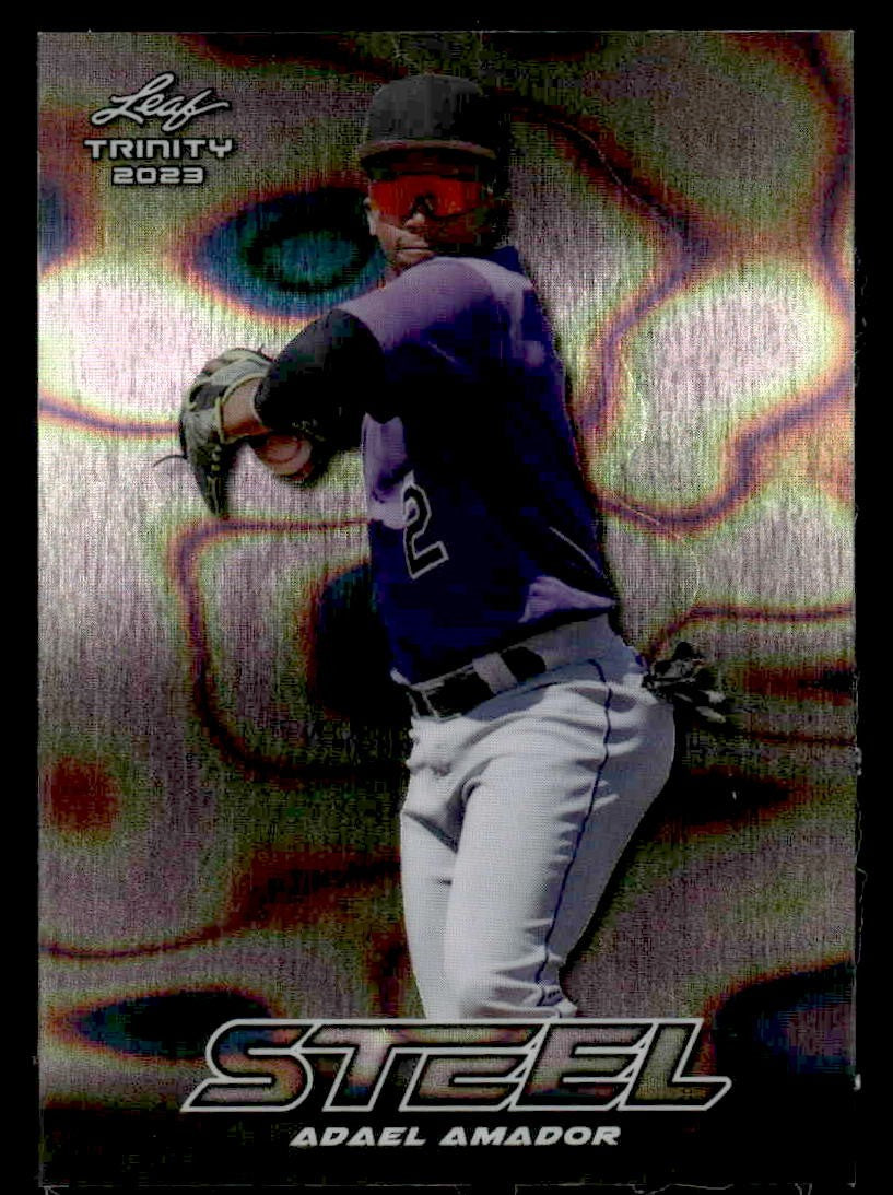 This is a nice example of a 2023 Leaf Trinity #S-1 Adael Amador Steel Lava Silver
