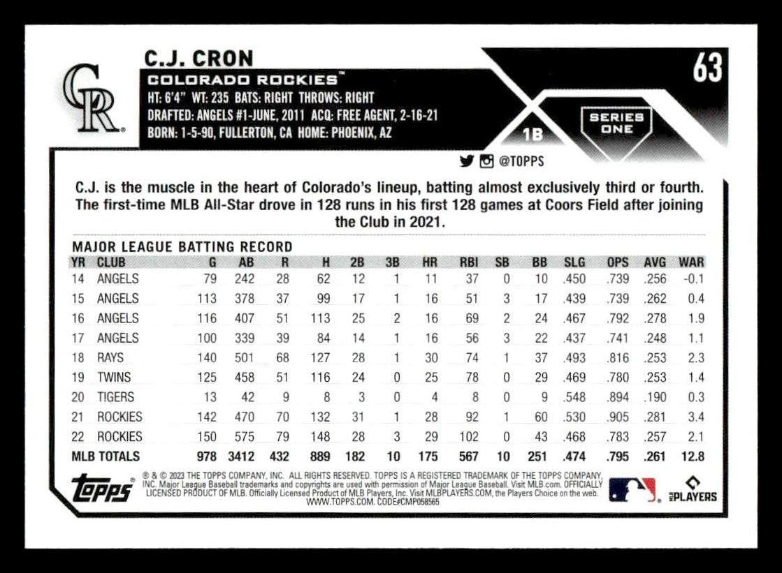 This is a nice example of a 2023 Topps #63 C.J. Cron
