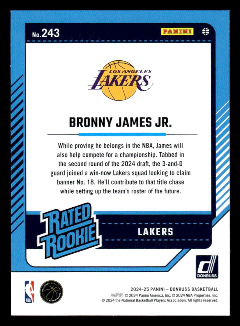 This is a nice example of a 2024-25 Donruss #243 Bronny James Jr.