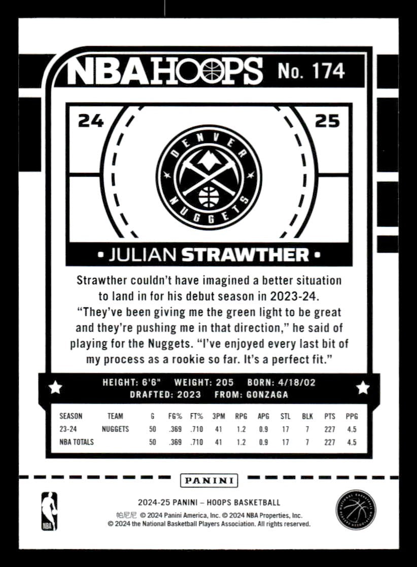This is a nice example of a 2024-25 Hoops #174 Julian Strawther