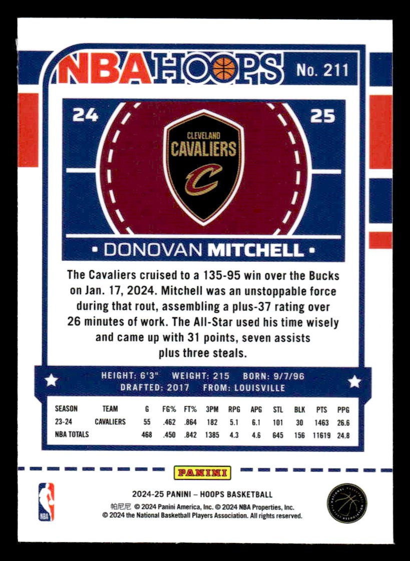 2024-25 Hoops #211 Donovan Mitchell Premium