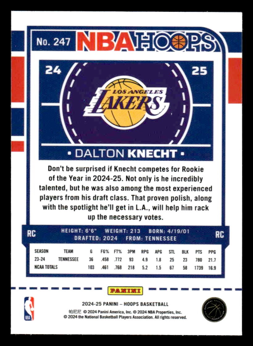 This is a nice example of a 2024-25 Hoops #247 Dalton Knecht Premium