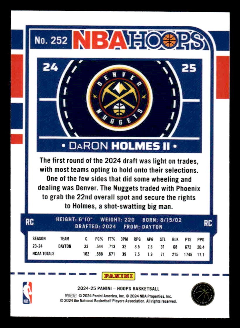 This is a nice example of a 2024-25 Hoops #252 DaRon Holmes II Premium
