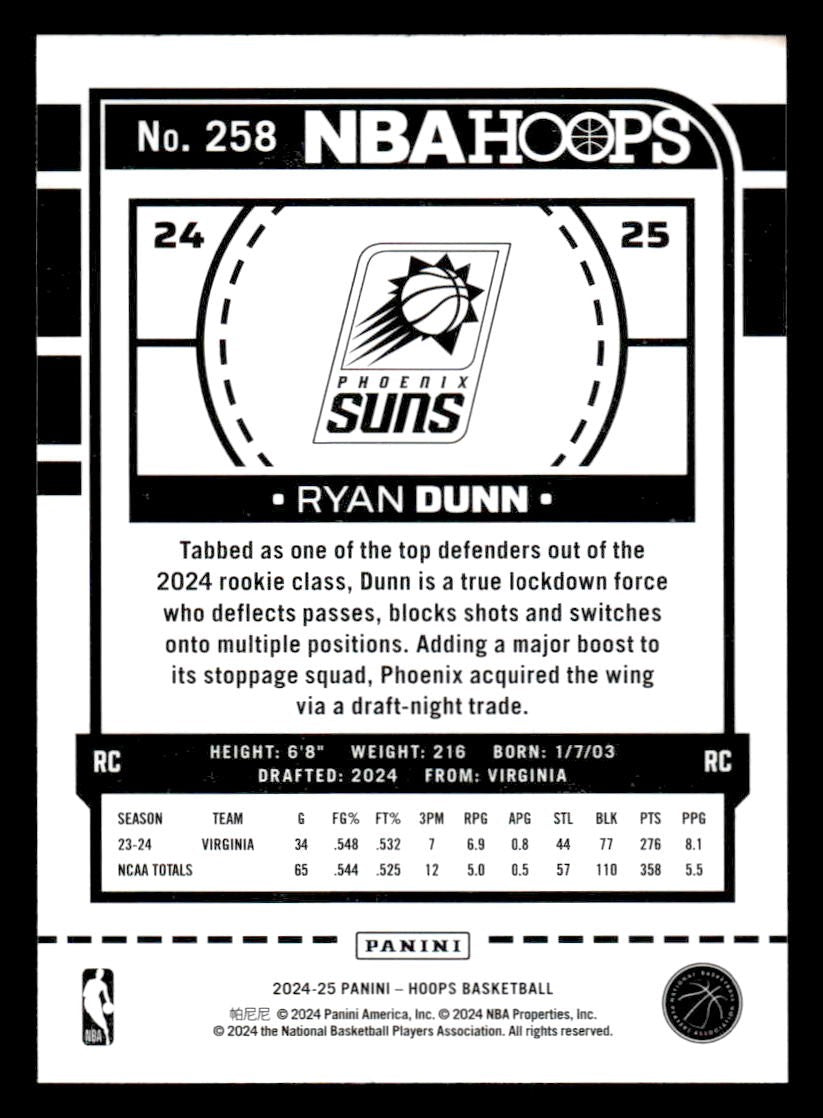 This is a nice example of a 2024-25 Hoops #258 Ryan Dunn