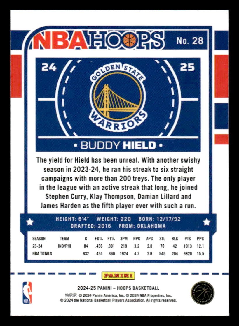 This is a nice example of a 2024-25 Hoops #28 Buddy Hield Premium