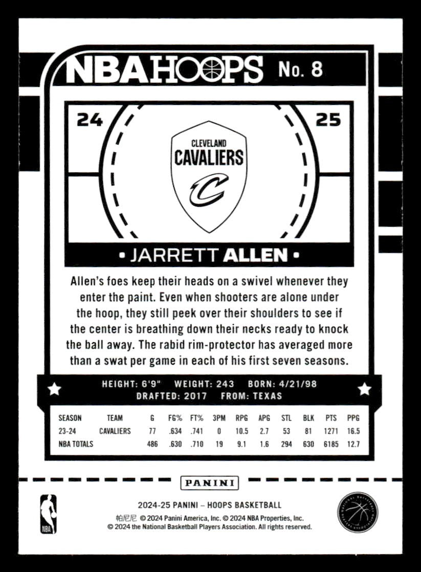 This is a nice example of a 2024-25 Hoops #8 Jarrett Allen