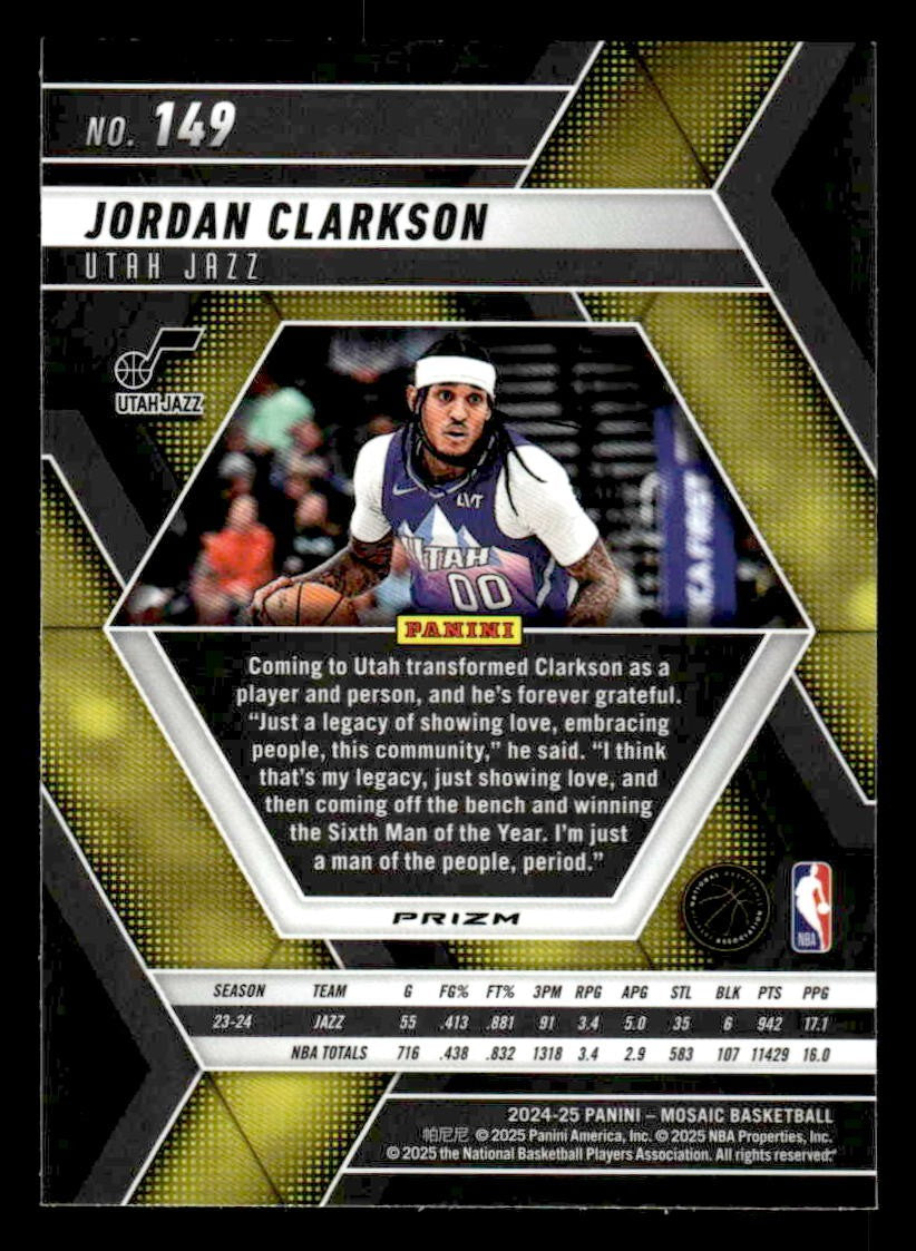 This is a sharp example of the 2024-25 Panini Mosaic #149 featuring Jordan Clarkson.