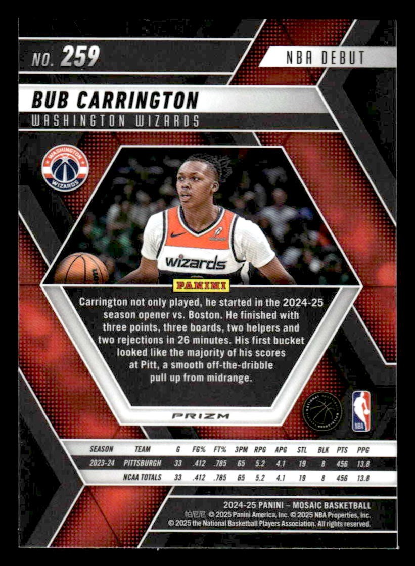This is a sharp example of the 2024-25 Panini Mosaic #259 featuring Bub Carrington.