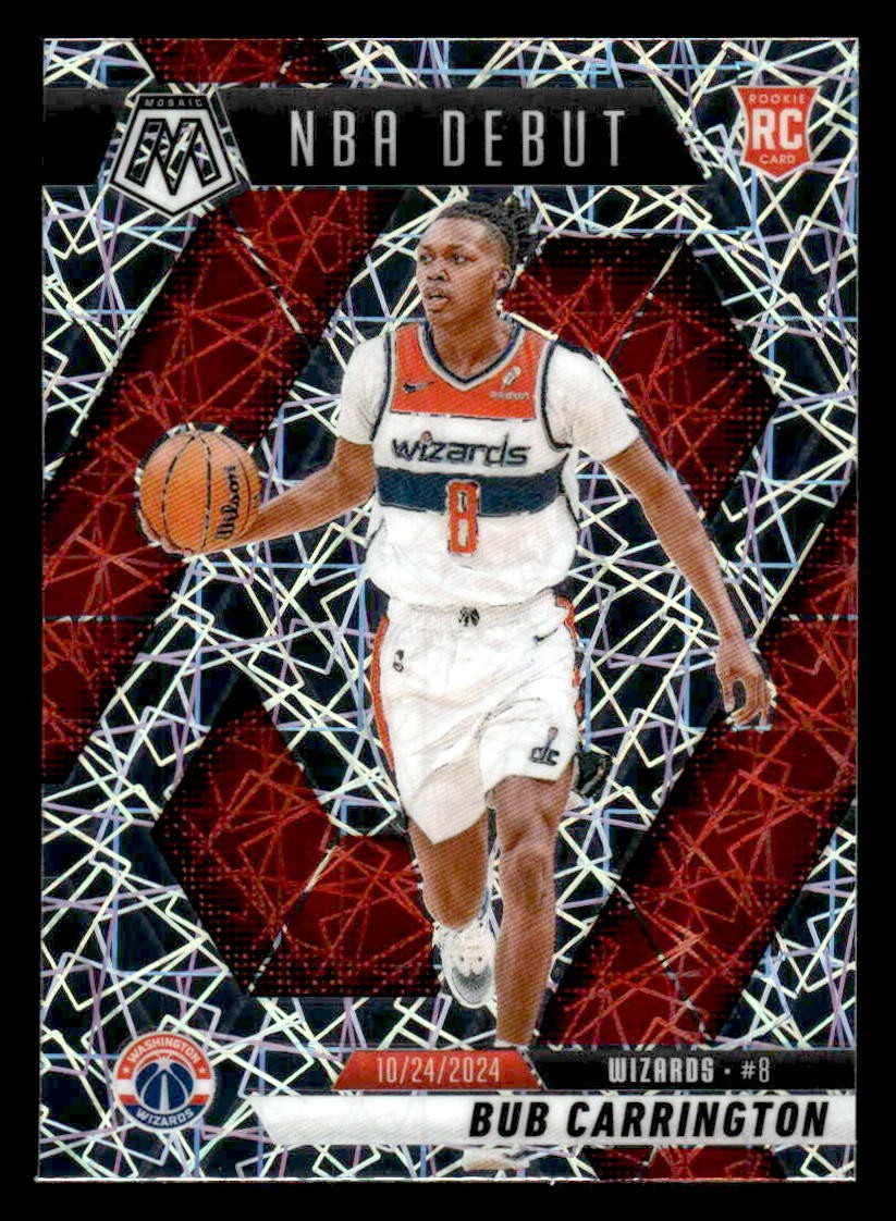 Bub Carrington played for the Washington Wizards in 2024, and this card is a standout from the Panini 2024-25 Panini Mosaic release. Whether you're chasing rookies, SSPs, or building a premium collection, this card delivers.