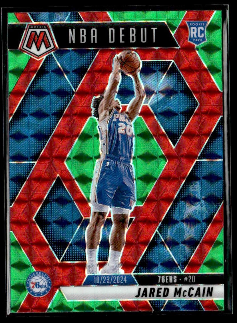 This listing is for a sharp 2024-25 Panini Mosaic card of Jared McCain from the 2024 Panini release . Collectors know this series for its premium design and standout parallels, and this card is a must-have for any basketball collection.