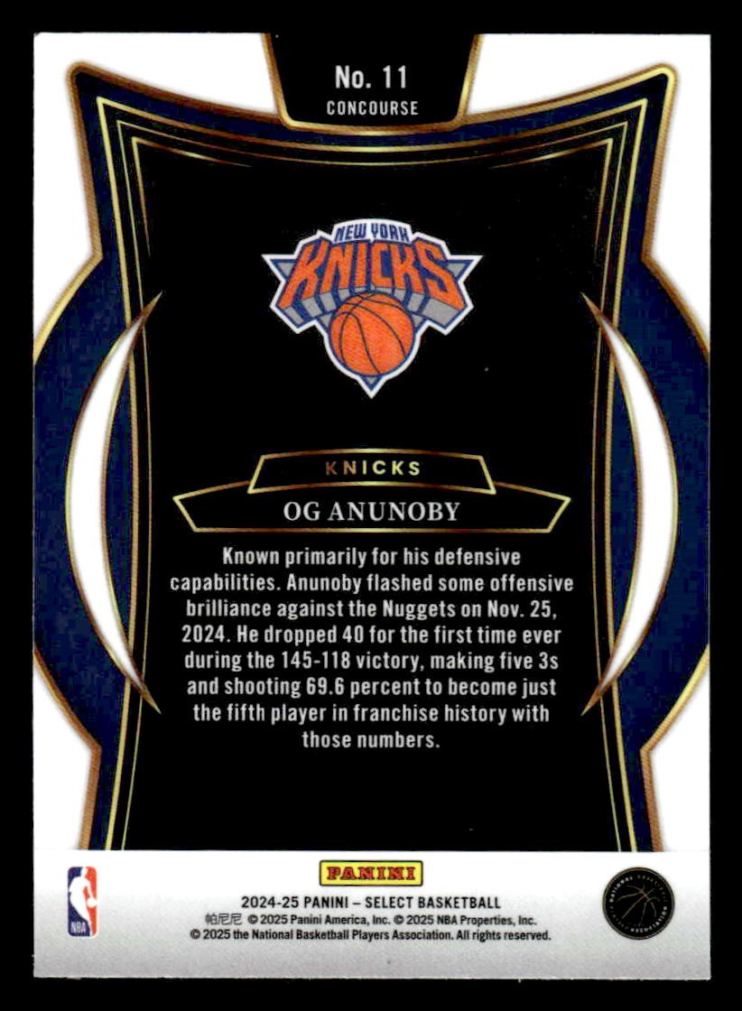 This is a sharp example of the 2024-25 Panini Select #11 featuring OG Anunoby.