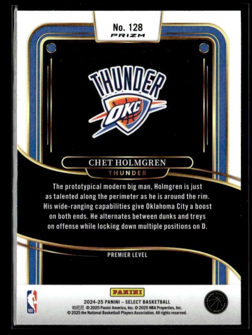 This is a sharp example of the 2024-25 Panini Select #128 featuring Chet Holmgren.