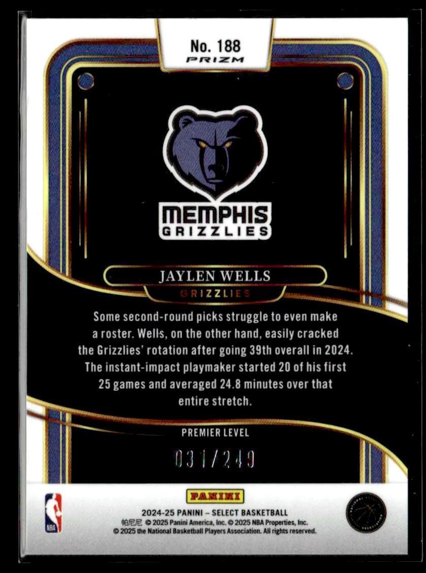 This is a sharp example of the 2024-25 Panini Select #188 featuring Jaylen Wells.