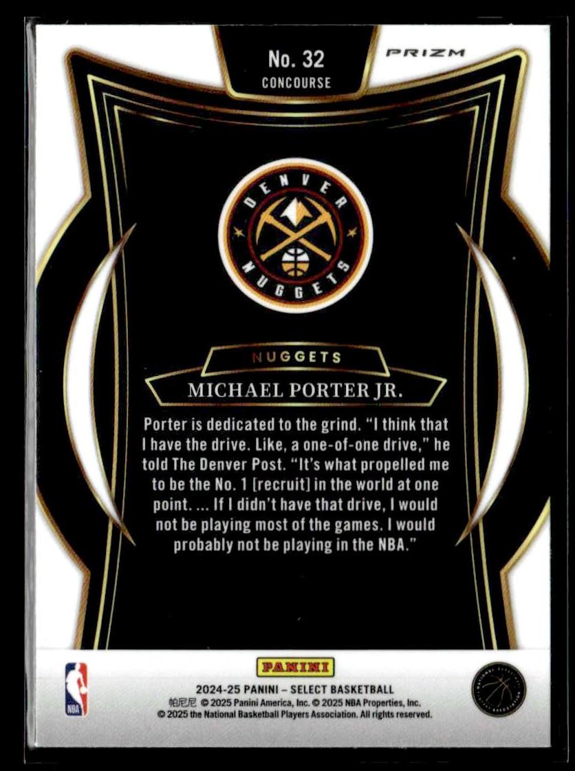 This is a sharp example of the 2024-25 Panini Select #32 featuring Michael Porter Jr..
