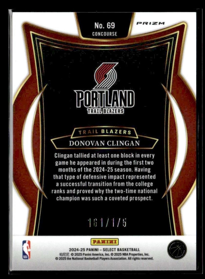This is a sharp example of the 2024-25 Panini Select #69 featuring Donovan Clingan.