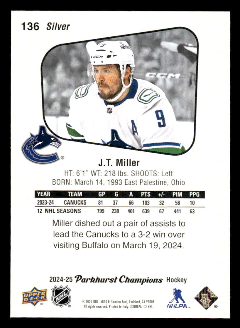 J.T. Miller β 2024 Upper Deck 2024-25 Parkhurst Champions Silver