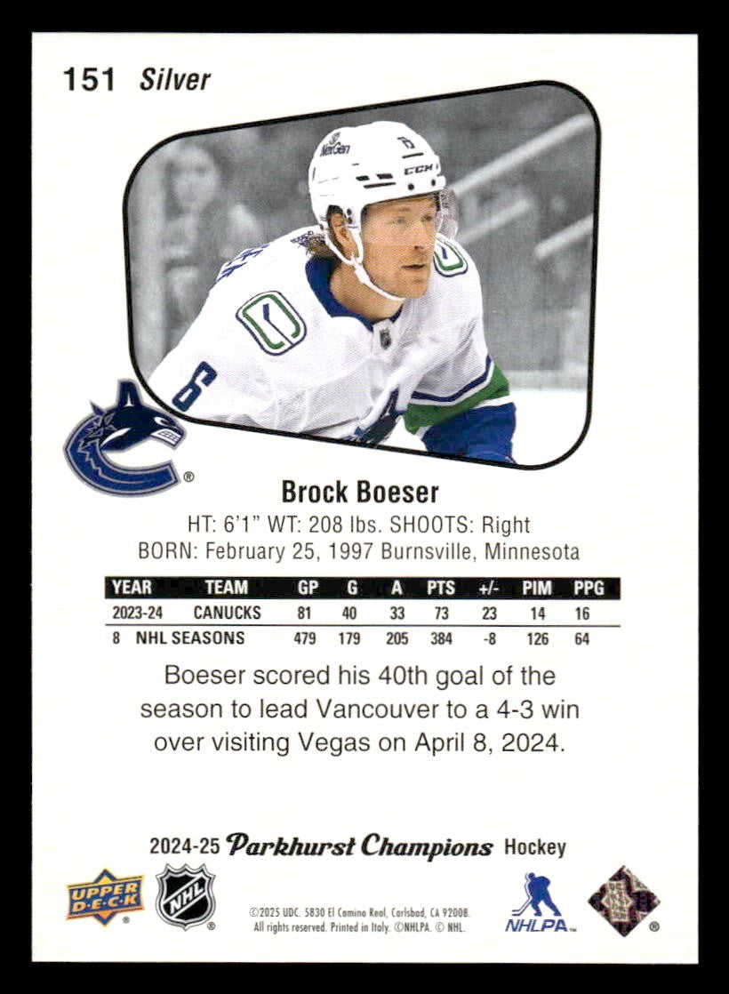 Brock Boeser β 2024 Upper Deck 2024-25 Parkhurst Champions Silver