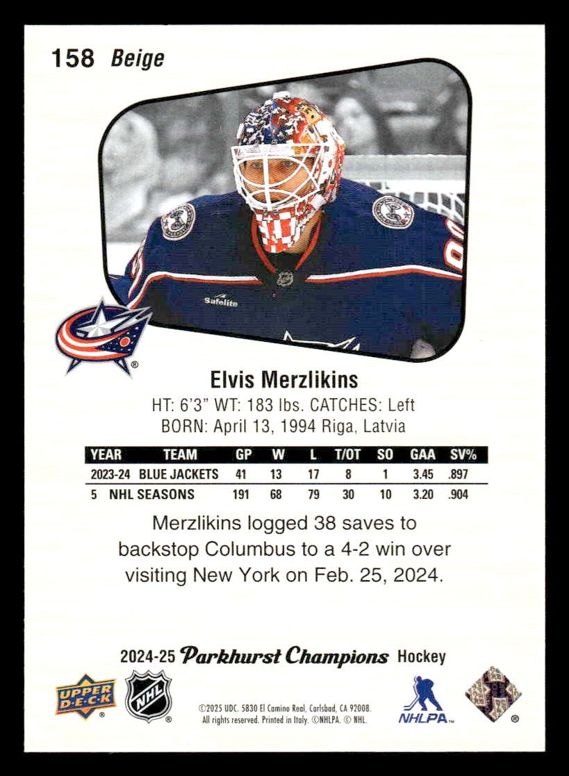 Elvis Merzlikins β 2024 Upper Deck 2024-25 Parkhurst Champions