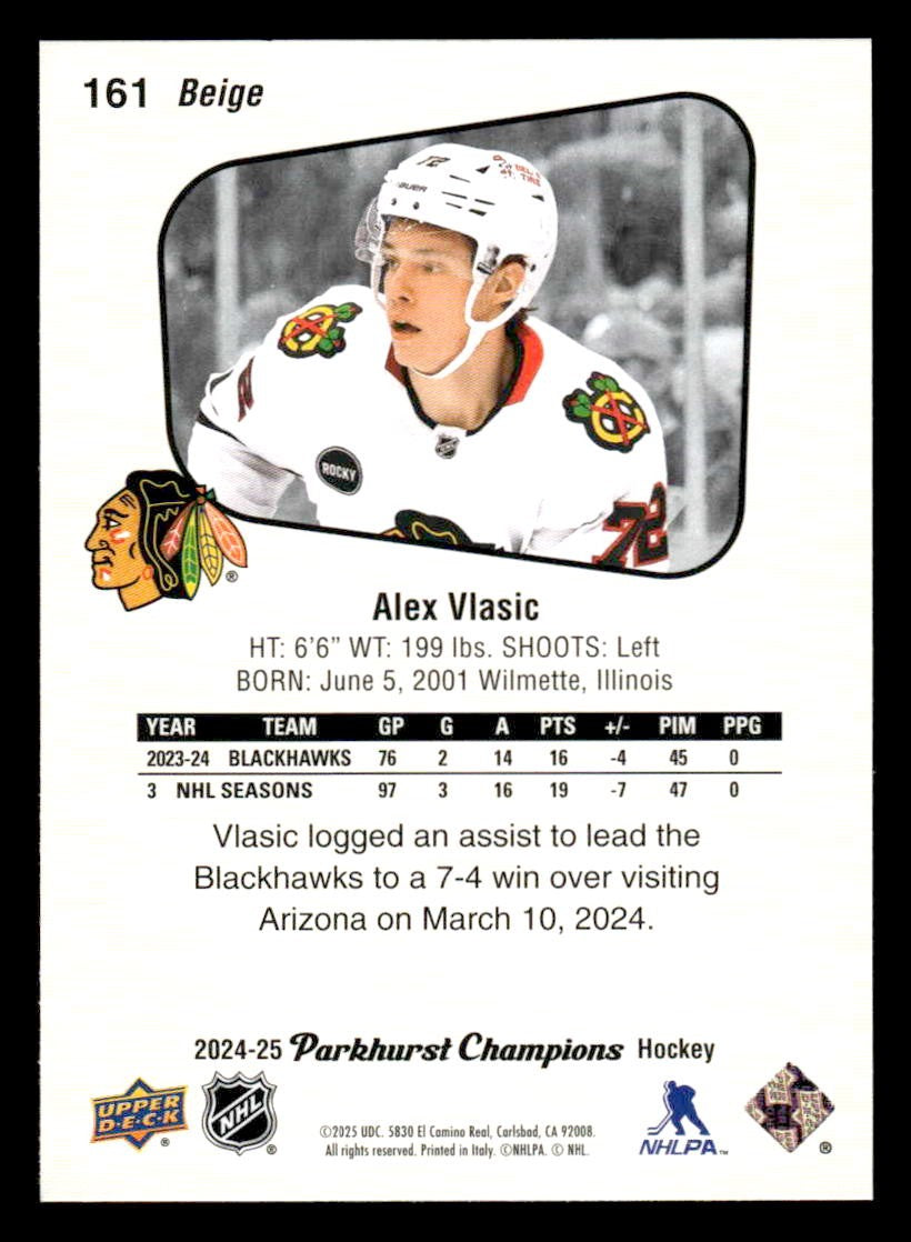 This is a sharp example of the 2024-25 Parkhurst Champions #161 featuring Alex Vlasic.
