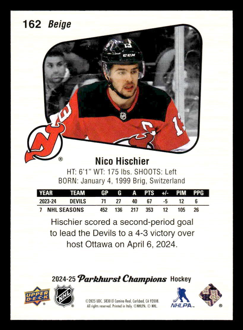 Nico Hischier β 2024 Upper Deck 2024-25 Parkhurst Champions