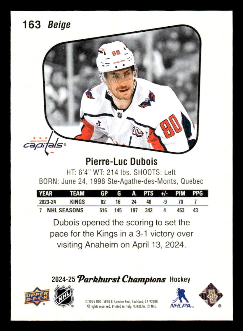 Pierre-Luc Dubois played for the Washington Capitals in 2024, and this card is a standout from the Upper Deck 2024-25 Parkhurst Champions release. Whether you're chasing rookies, SSPs, or building a premium collection, this card delivers.