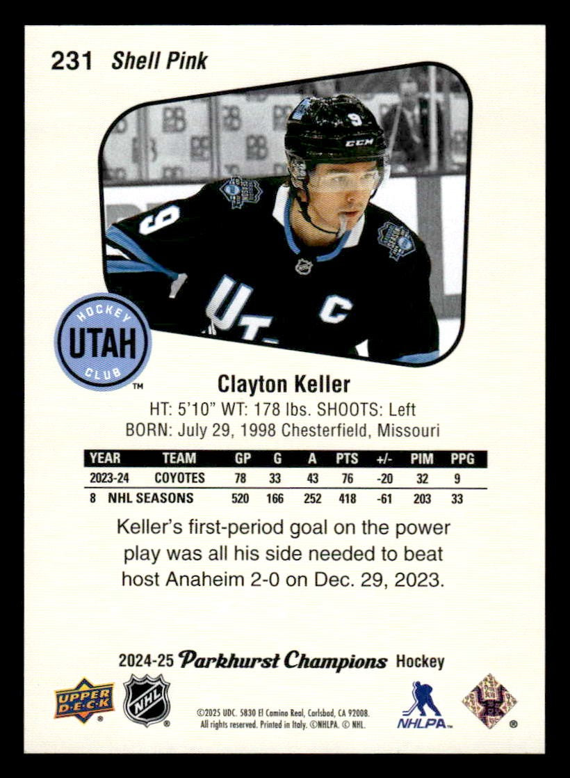 Clayton Keller β 2024 Upper Deck 2024-25 Parkhurst Champions Shell Pink Border