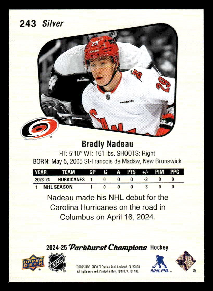 Bradly Nadeau β 2024 Upper Deck 2024-25 Parkhurst Champions Silver