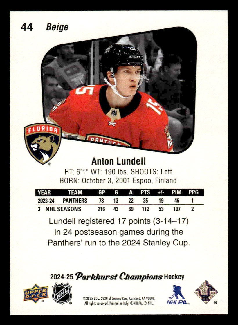Anton Lundell β 2024 Upper Deck 2024-25 Parkhurst Champions