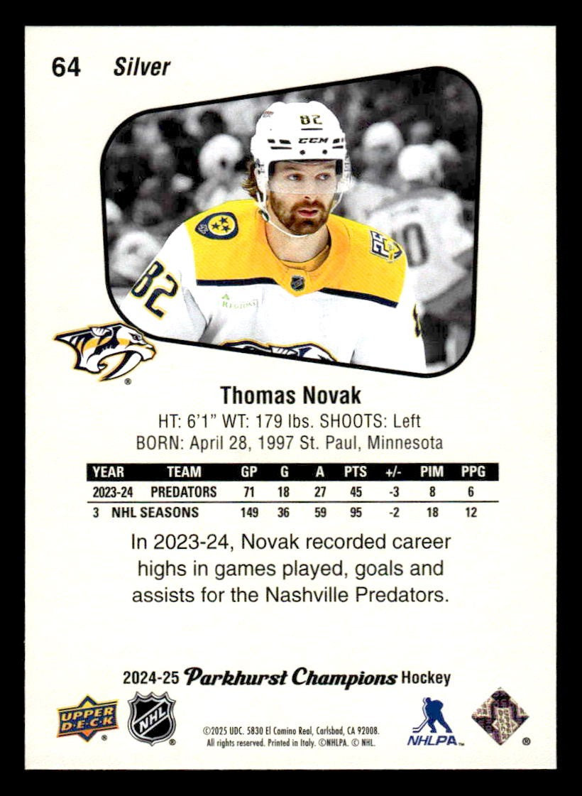 Thomas Novak β 2024 Upper Deck 2024-25 Parkhurst Champions Silver
