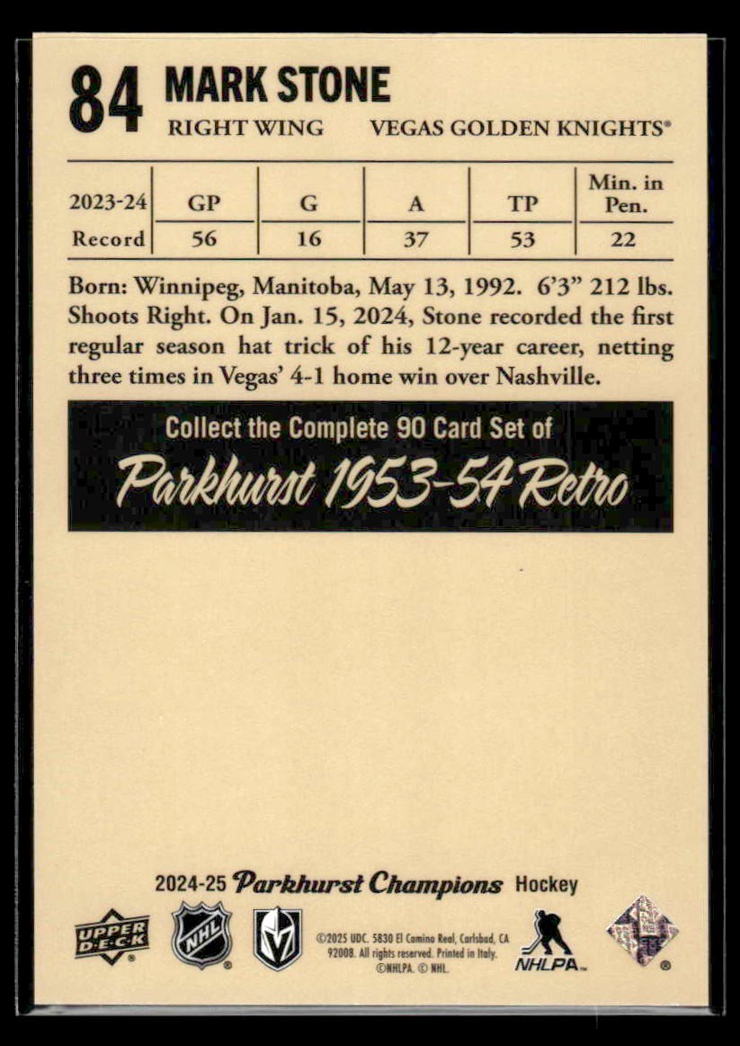 Mark Stone β 2024 Upper Deck 2024-25 Parkhurst Champions 1953-54 Retros