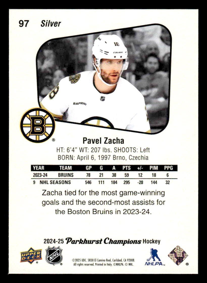Pavel Zacha β 2024 Upper Deck 2024-25 Parkhurst Champions Silver