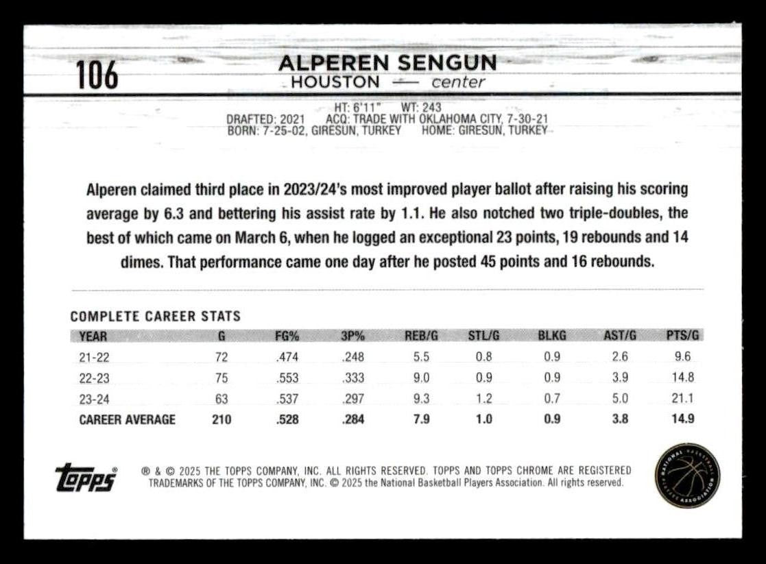 2024-25 Topps Chrome #106 Alperen Sengun