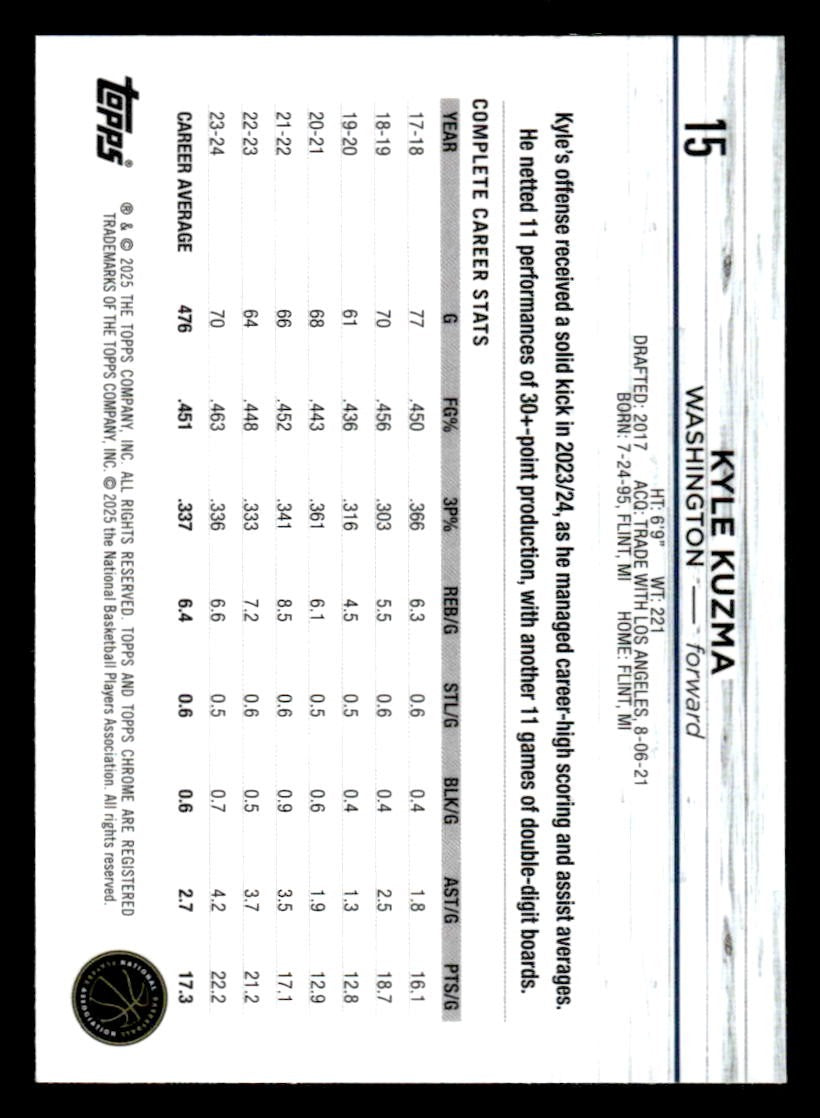 2024-25 Topps Chrome #15 Kyle Kuzma