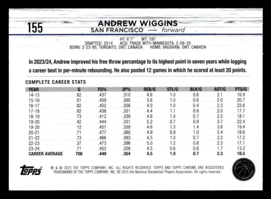2024-25 Topps Chrome #155 Andrew Wiggins