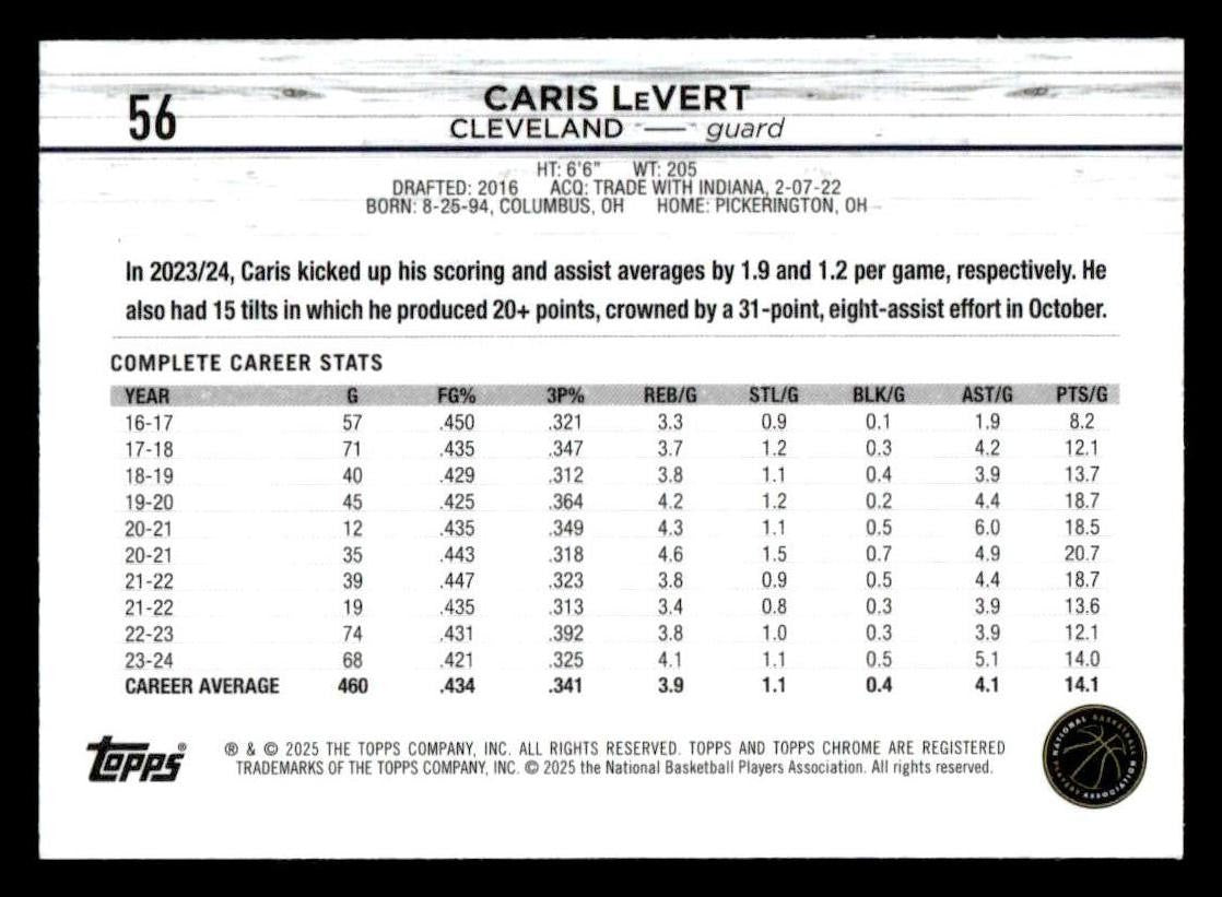 This is a sharp example of the 2024-25 Topps Chrome #56 featuring Caris LeVert.