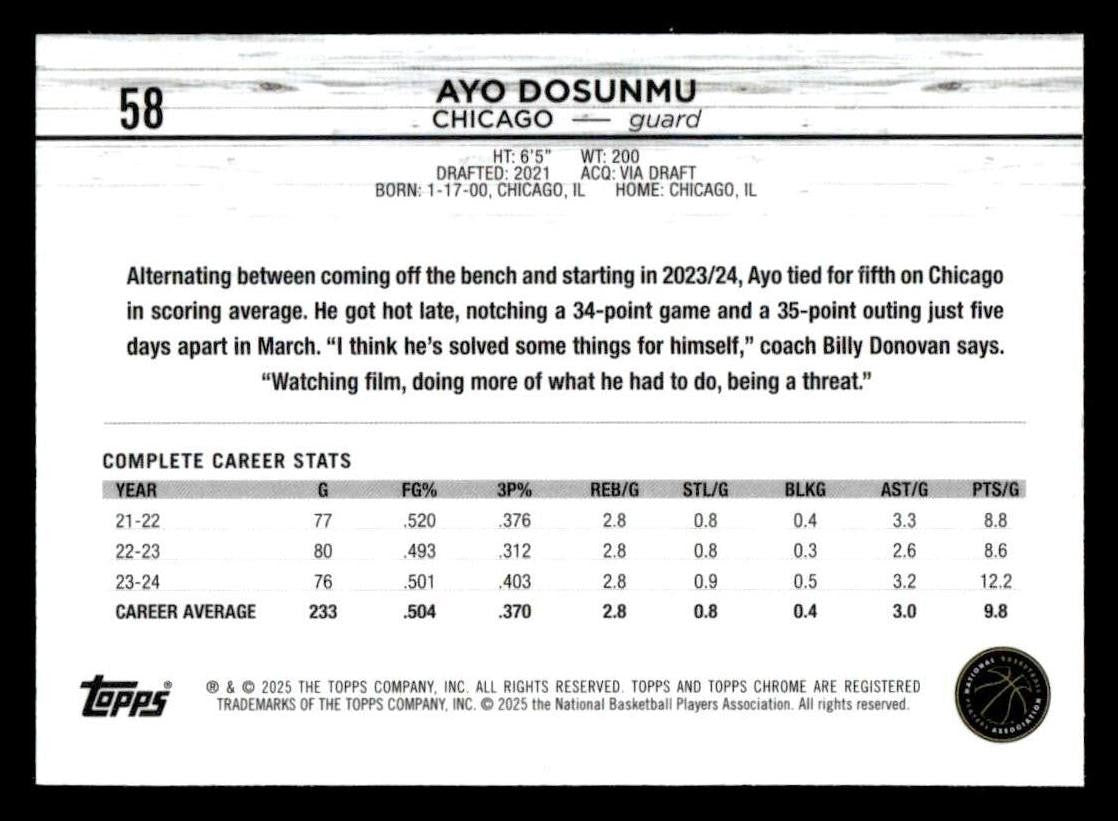 2024-25 Topps Chrome #58 Ayo Dosunmu