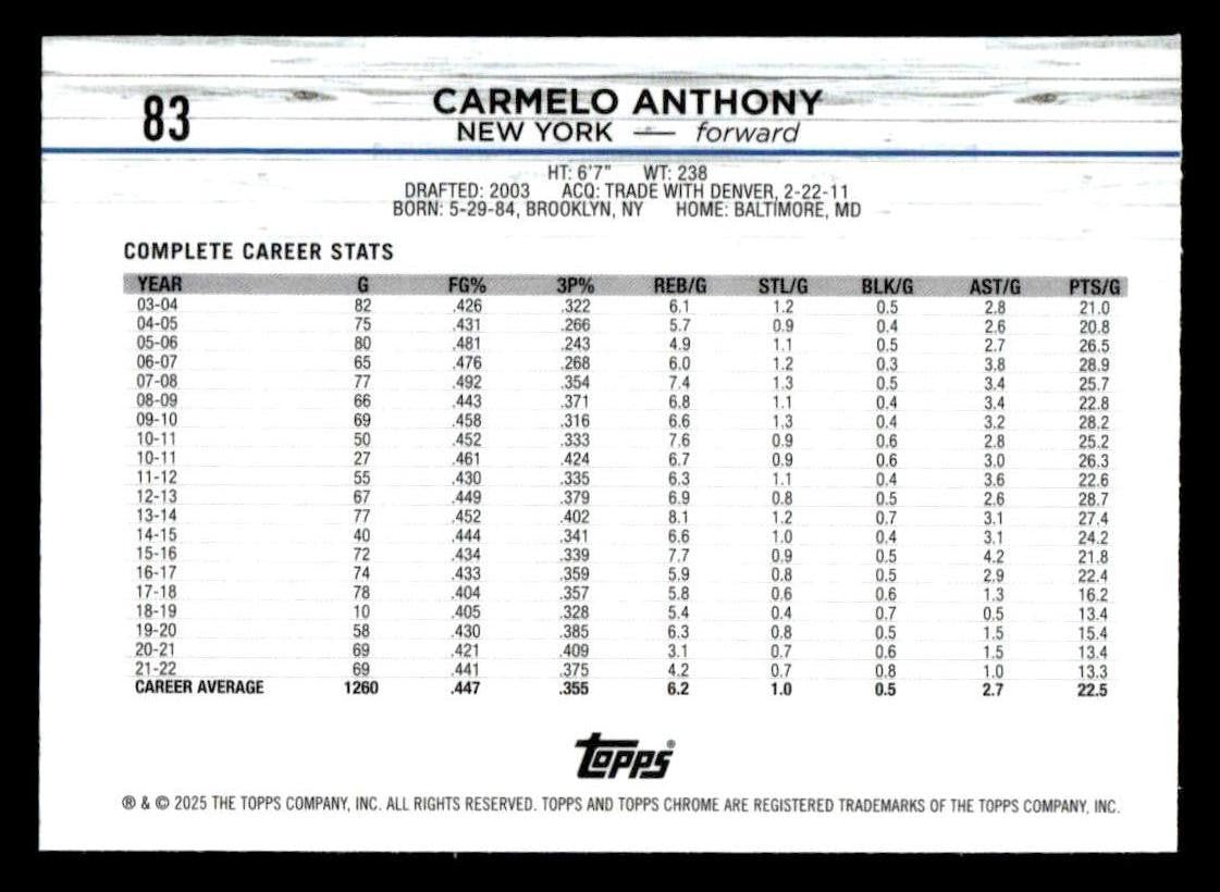2024-25 Topps Chrome #83 Carmelo Anthony