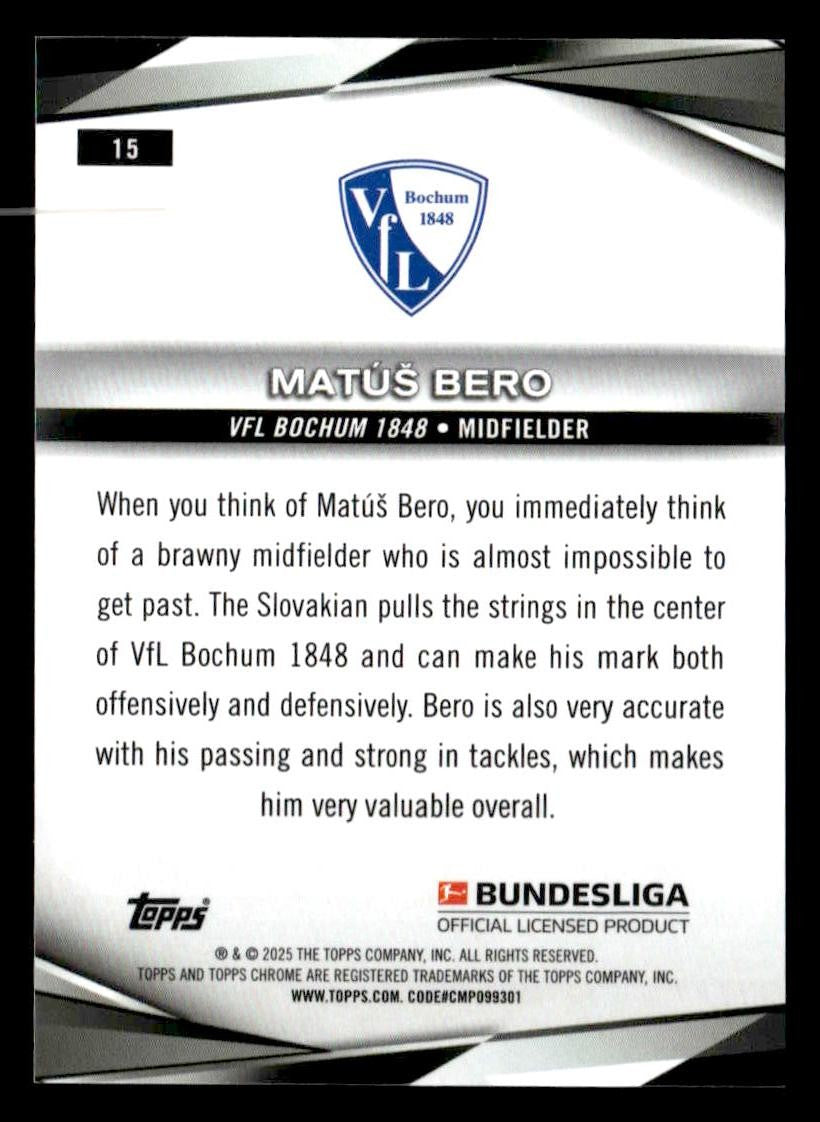 This is a sharp example of the 2024-25 Topps Chrome Bundesliga #15 featuring Matúš Bero.