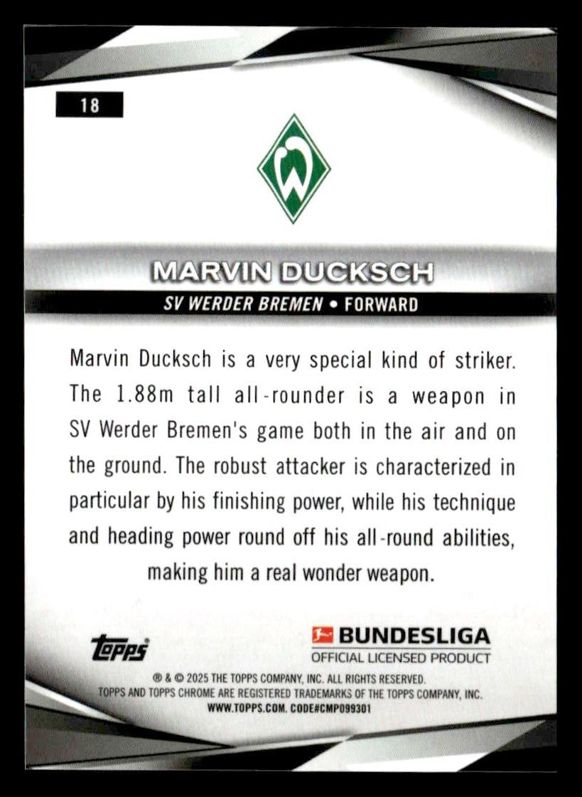This is a sharp example of the 2024-25 Topps Chrome Bundesliga #18 featuring Marvin Ducksch.