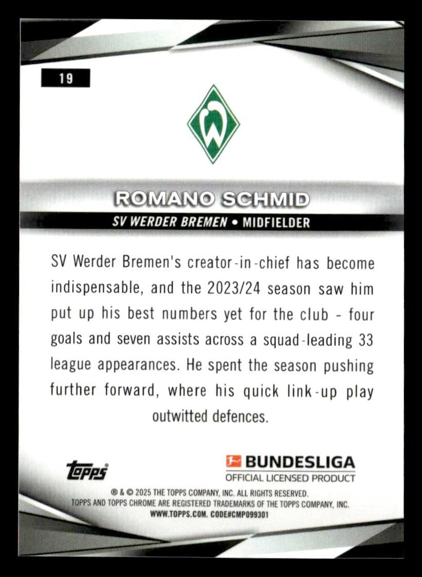 This is a sharp example of the 2024-25 Topps Chrome Bundesliga #19 featuring Romano Schmid.