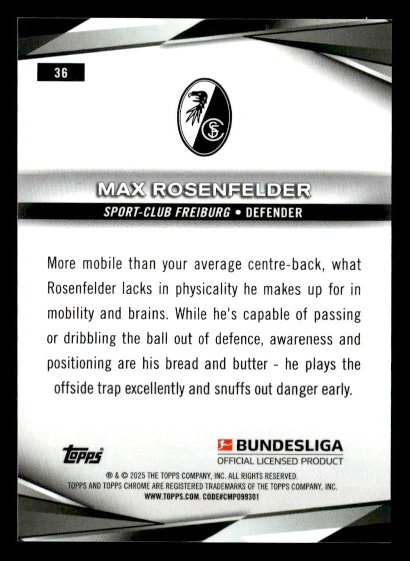 This is a sharp example of the 2024-25 Topps Chrome Bundesliga #36 featuring Max Rosenfelder.