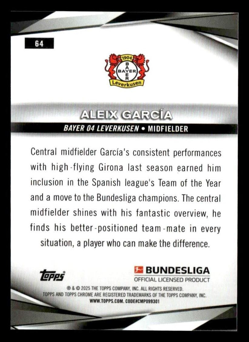 This is a sharp example of the 2024-25 Topps Chrome Bundesliga #64 featuring Aleix García.